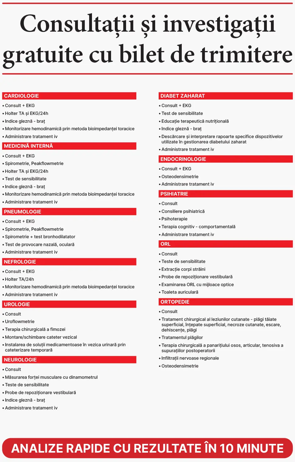 De asemenea, pacienții pot beneficia de analize complete cu rezultate în doar 10 minute.