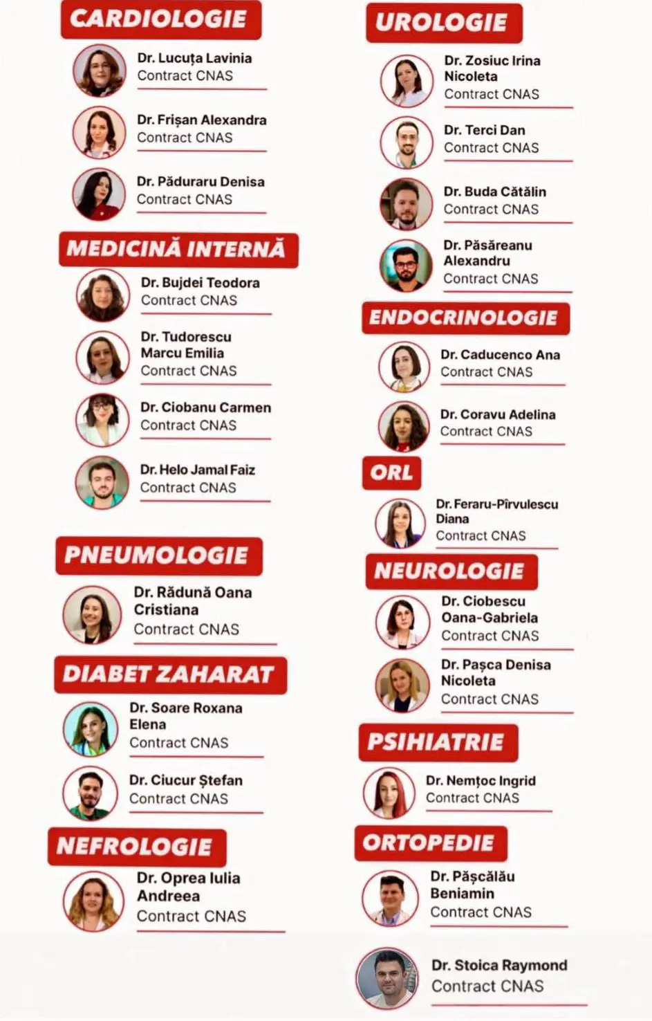 Echipa noastră este compusă din medici specialiști de renume în următoarele domenii: