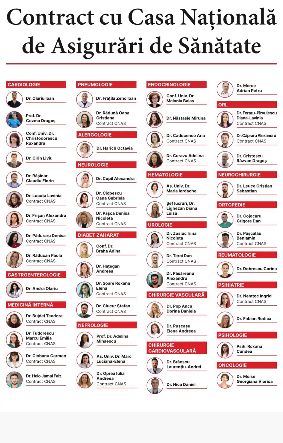 Suntem o clinică multidisciplinară, în contract cu Casa de Asigurări de Sănătate Timiș, specializată în soluții medicale avansate și îngrijire de calitate, acoperind o gamă variată de afecțiuni.
